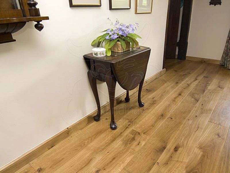 Hajópadló-kinézetű, osztatlan, egy fedőrétegből álló szalagparketta, gyárilag olajozott vagy lakkozott kivitelben.